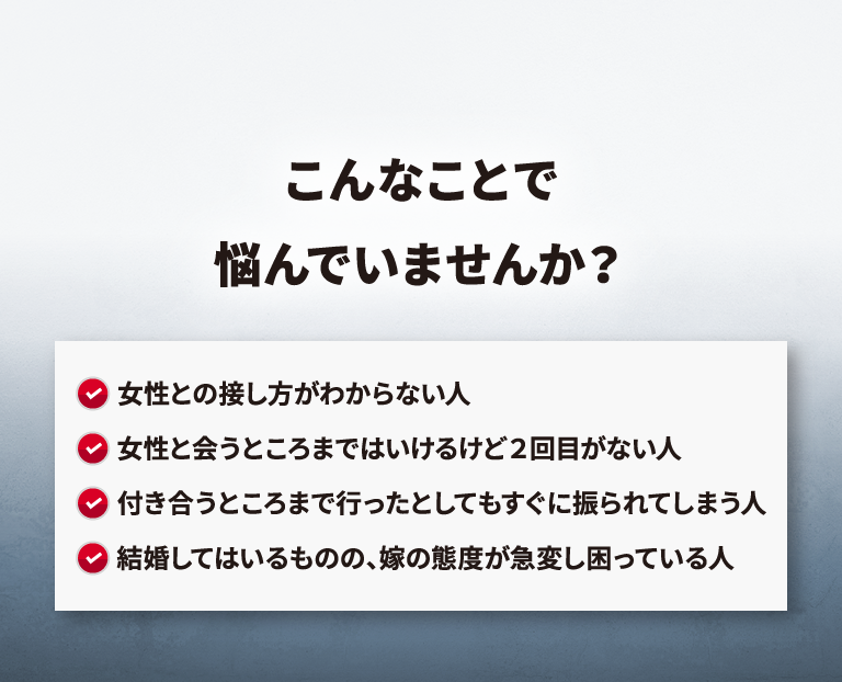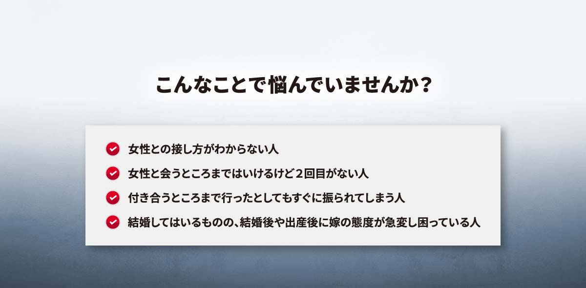 モテるようになり、長期的な関係性を築けるようになることを目的とする。