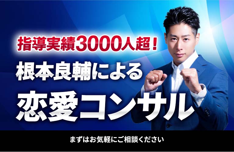 根本さんから恋愛を教わって2週間である程度恋愛で結果がでるようになりました。自信がついたので自分も恋愛講師として活動することになりました。根本さんに恋愛の基本の全てを教えてもらえたので、できるようになりました。根本さんのコンサルでは"恋愛力"が身につくのでどんな恋愛コンサルよりもお勧めします。(Fさん、22歳)